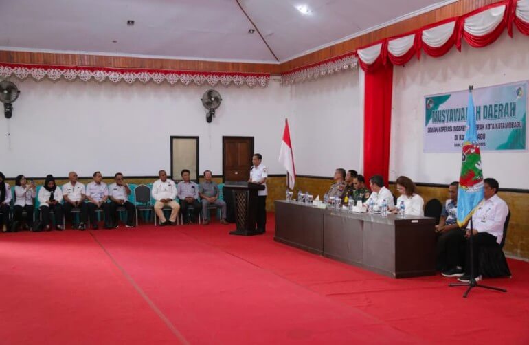 Musda Dekopinda Kota Kotamobagu, dihadiri Ketua Dewan Koperasi Indonesia Wilayah Sulawesi Utara, Dr. Ir. G.S. Vicky Lumentut, S.H., M.Si., D.E.A., Perwakilan Forkopimda Kota Kotamobagu, Sekretaris Dewan Koperasi Indonesia Wilayah Sulawesi Utara, Dra. Christiana Pusung, M.Si, para Asisten dan Pimpinan Organisasi Perangkat Daerah di lingkungan Pemerintah Kota Kotamobagu, para Pimpinan Perguruan Tinggi di Kota Kotamobagu, para pengurus Dewan Koperasi Indonesia Wilayah Sulawesi Utara, Pengurus Dewan Koperasi Indonesia Daerah Kota Kotamobagu, serta para pengurus Koperasi se – Kota Kotamobagu.