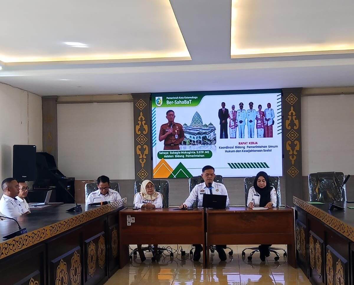 komunikasulut.com – Asisten I Bidang Pemerintahan Sekretariat Daerah Kota Kotamobagu, Sahaya S. Mokoginta, S.STP., ME, menggelar rapat perdana bersama para camat dan sangadi se-Kota Kotamobagu. Pertemuan ini menjadi langkah awal dalam memperkuat koordinasi serta menyelaraskan pelaksanaan pemerintahan umum dari tingkat kota hingga desa, demi mewujudkan visi dan misi Kotamobagu BERSAHABAT.