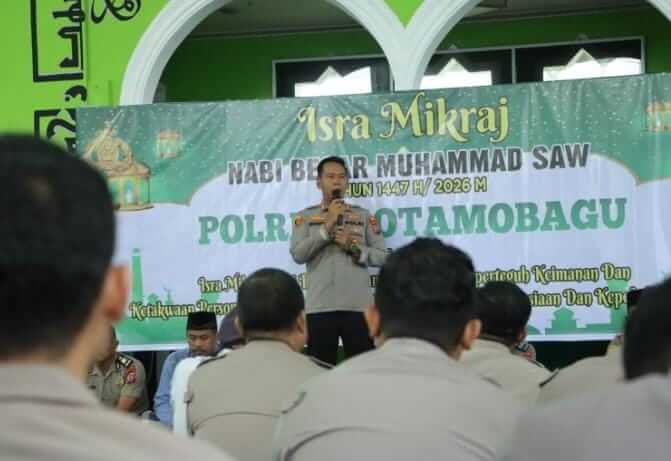 komunikasulut.com – Polres Kotamobagu menggelar acara keagamaan dalam rangka memperingati Isra Mi’raj Nabi Muhammad SAW 1447 Hijriah, Kamis (22/1/2026).