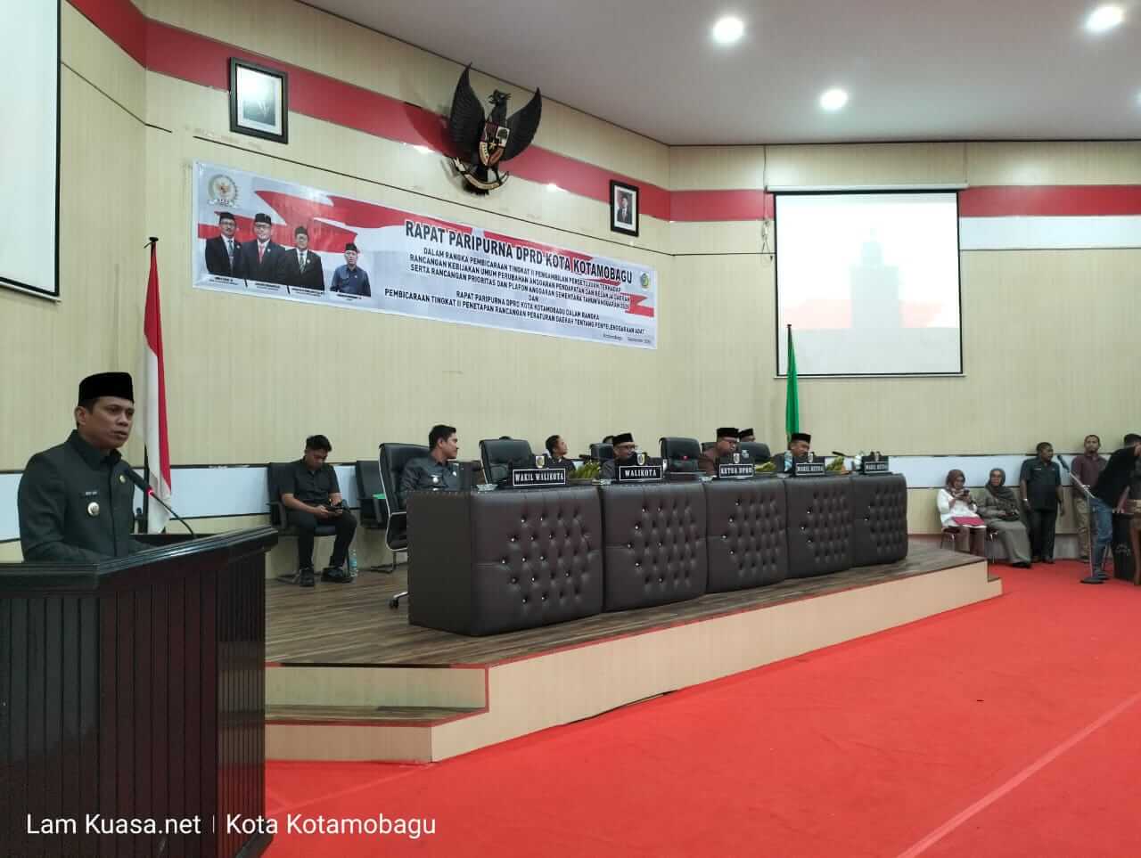 komunikasulut.com – WaliKota dr Weny Gaib Spm dan Wakil WaliKota Kotamobagu, Rendy Virgiawan Mangkat SH MH menghadiri Rapat Paripurna DPRD Kota Kotamobagu dalam rangka Pembicaraan Tingkat II Penetapan Rancangan Peraturan Daerah (Ranperda) tentang Penyelenggaraan Adat yang bertempat di gedung DPRD Kotamobagu, Kamis (18/9/2025) malam.