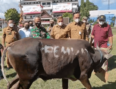 Pembagian hewan Qurban berlangsung di Lapangan Sparta Tikala Manado, Senin (19/7/2021). Richard Sualang selaku Wakil Walikota Manado menghadiri langsung kegiatan itu.