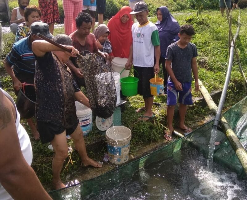 “Untuk membantu para petani di sektor perikanan maka kami pemerintah desa memberikan bantuan bibit benih ikan air tawar beserta pakan,” ujarnya.