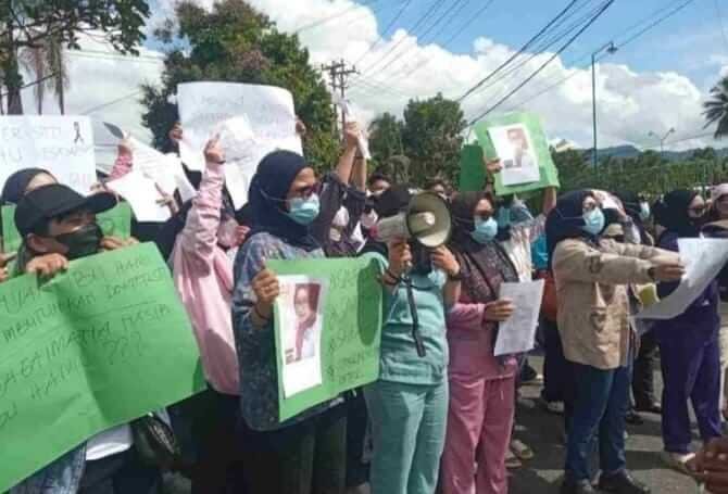Dalam tuntutannya, massa aksi menolak penetapan tersangka terhadap dokter Sitti sebelum ada hasil otopsi, penetapan tersangka harus berdasarkan audit medis secara menyeluruh.