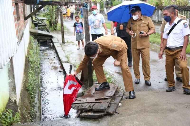 Manado – Kondisi hujan tak menyurutkan niat Walikota Manado, Andrei Angouw mengecek kondisi drainase dan aliran air di sejumlah parit, di Tuna, Wonasa, Kecamatan Singkil, Kota Manado, Senin (7/2/2022).