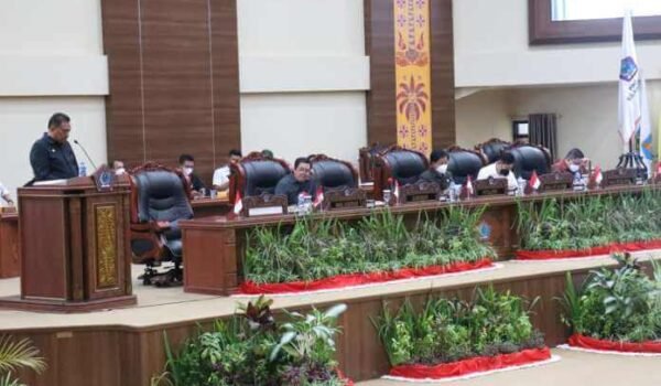KOMUNIKASULUT.COM – DPRD Sulut kembali menggelar Paripurna dengan pembahasan penetapan program pembentukan peraturan daerah (Propemperda) Provinsi Sulut tahun 2022, dan pengambilan keputusan terhadap Ranperda tentang APBD Provinsi Sulut tahun anggaran 2022, Ruang Paripurna DPRD Sulut, Rabu (17/11/2021).