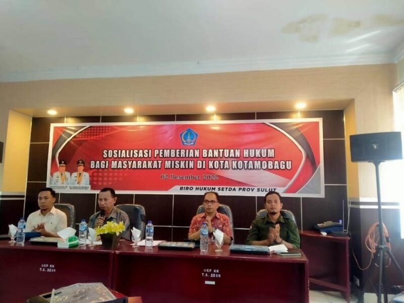 Komunikasulut.com – Asisten Pemerintahan dan Kesra Setda Kota Kotamobagu Nasli Paputungan SE, membuka kegiatan Sosialisasi Bantuan Hukum Bagi Masyarakat Miskin di Kota Kotamobagu, yang digelar Biro Hukum Sekretariat Daerah Provinsi Sulawesi Utara, Jumat (02/12/22) yang bertempat di Aula kantor Dinas Ketahanan Pangan Kotamobagu.