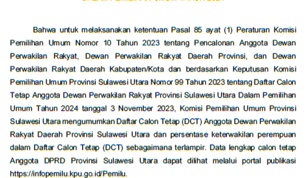 khaki-bee-173050.hostingersite.com – Komisi Pemilihan Umum (KPU) Sulawesi Utara telah mengumumkan Daftar Calon Tetap (DCT) Anggota […]