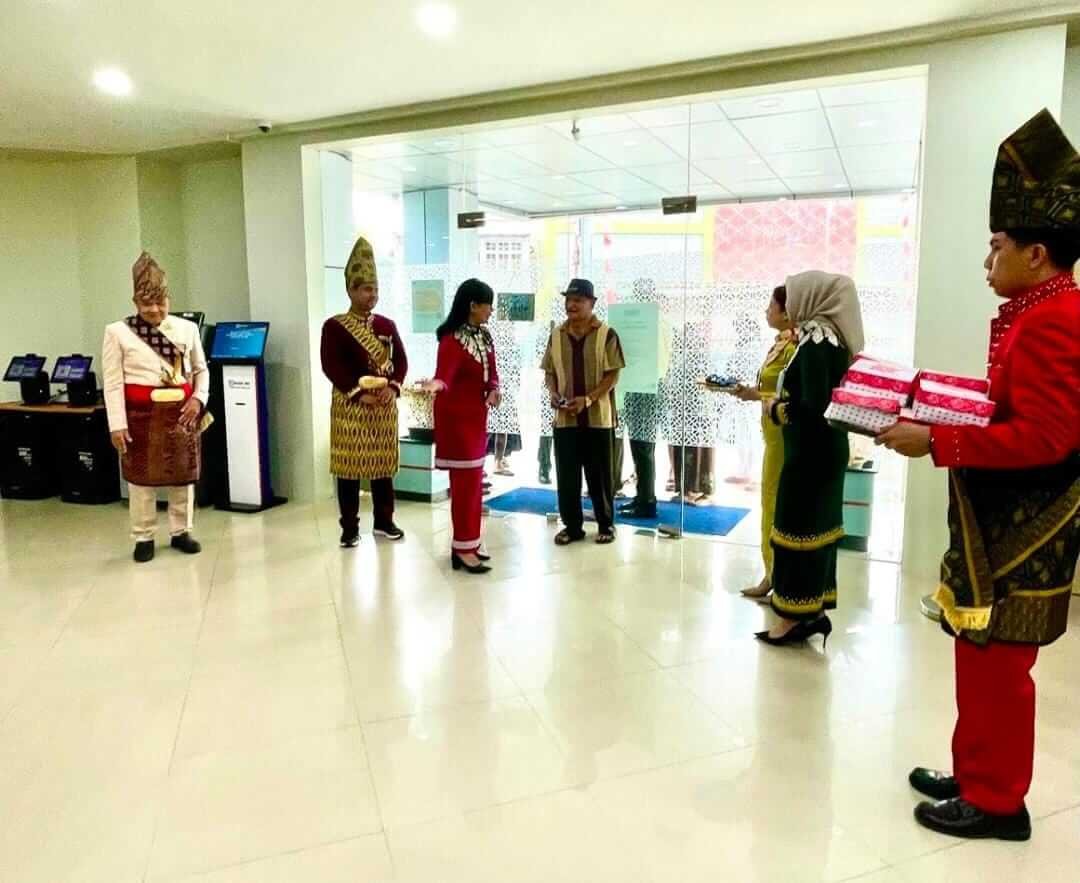 Menambah kesan unik pada peringatan kali ini, Pimpinan dan karyawan BRI Cabang Kotamobagu menyambut nasabah dengan mengenakan pakaian adat khas Bolaang Mongondow.