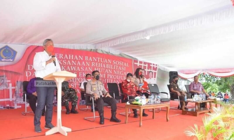 Penyerahan bantuan yang dimaksud yakni, barang/pekerjaan pembuatan Tanaman Hutan Rakyat bukan hibah/bansos kepada 53 KTH dan Sarana Prasarana Usaha Ekonomi Produktif kepada 9 KTH yang berasal dari seluruh Kabupaten/Kota se-Provinsi Sulawesi Utara.
