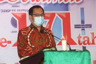 atas nama pemerintah dan masyarakat Kota Tomohon, serta atas nama pribadi dan keluarga, dengan penuh kasih menyampaikan “selamat hari ulang tahun ke-171“ kepada seluruh jemaat GMIM Damai Sejahtera Lahendong.