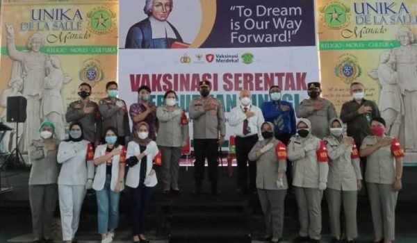 Polri dan Staf Khusus Presiden Vaksinasi Civitas Akademika De La Salle Manado