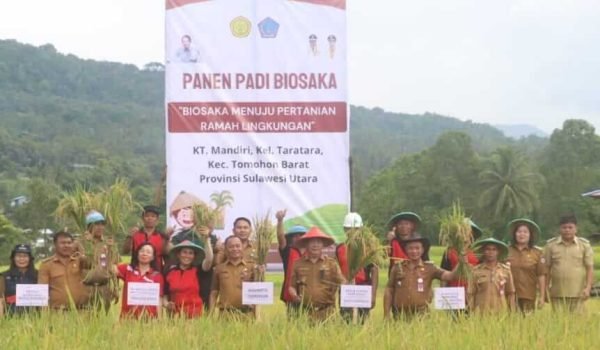 Caroll Senduk Lakukan Panen Padi Biosaka di Taratara