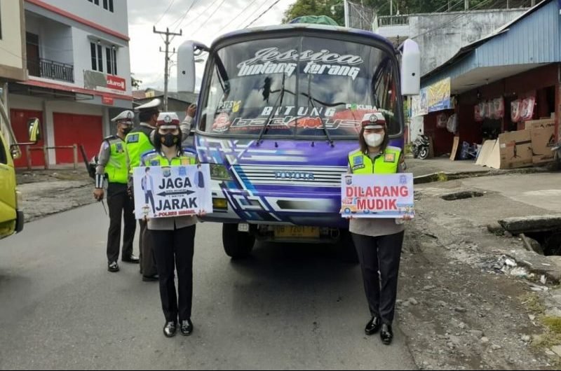 KOMUNIKASULUT.COM – Himbauan pemerintah terkait larangan mudik pada perayaan lebaran tahun ini terus gencar disosialisasikan oleh segenap jajaran Polres Minahasa Selatan.