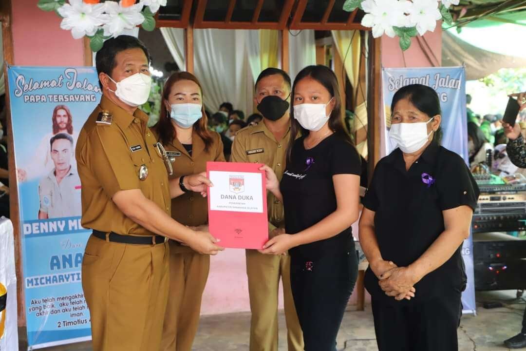 Dalam kesempatan tersebut Wakil Bupati Minahasa Selatan menyerahkan langsung Bantuan Dana Duka Pemerintah Kabupaten Minahasa Selatan senilai Rp. 1.000.000,- kepada Keluarga yang berduka Yaitu :