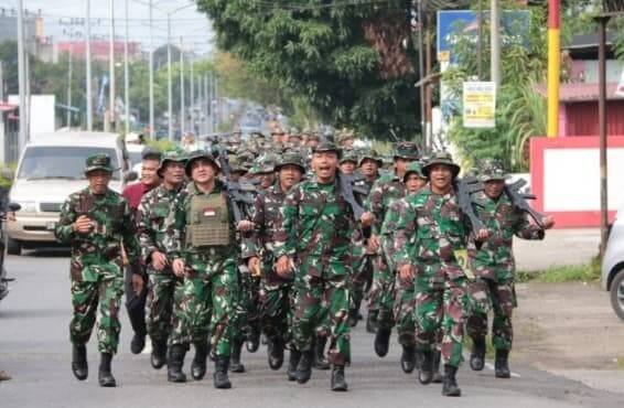 Dalam latihan ketahanan fisik dan mental tersebut, seluruh personel TNI menempuh perjalanan sejauh 10 kilometer.