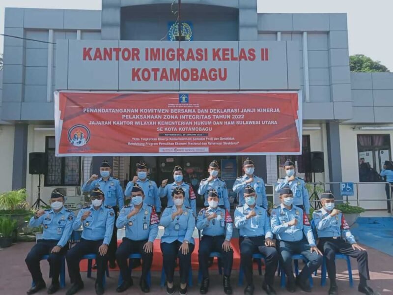 khaki-bee-173050.hostingersite.com – Kantor Imigrasi Kelas II Non TPI Kotamobagu menggelar penandatanganan Komitmen bersama dan deklarasi janji kinerja pelaksanaan zona Integritas tahun 2022 bersama para jajaran Kantor wilayah kementerian hukum dan ham (Kemenkumham) Sulawesi Utara (Sulut) se Kota Kotamobagu, Jumat (28/1/22).