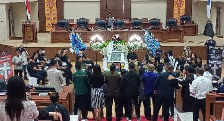 khaki-bee-173050.hostingersite.com – Upacara persemayan jenazah Almarhum Johny Panambunan Anggota DPRD Provinsi Sulawesi Utara (Sulut) aktif dari partai Nasional Demokrat (NasDem) yang di laksanakan oleh Sekretariat Dewan (Setwan) di ruang paripurna kantor DPRD Sulut, Rabu (16/11/2022).