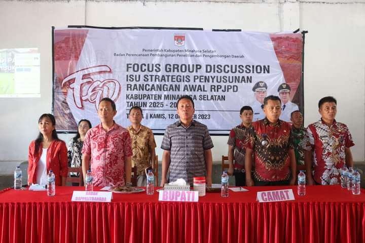 khaki-bee-173050.hostingersite.com – Bupati Minahasa Selatan Franky Donny Wongkar, SH., (FDW) membuka kegiatan FGD Isu Strategis Penyusunan Rancangan Awal RPJPD Kabupaten Minahasa Selatan Tahun 2025-2045, bertempat di BPU Desa Tenga, Kecamatan Tenga, Kamis (12/10/2023).