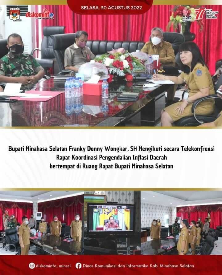 khaki-bee-173050.hostingersite.com – Bupati Minahasa Selatan Bpk. Franky Donny Wongkar, SH (FDW) didampingi Penjabat Sekretaris Daerah Minsel Ibu Glady Nova Lynda Kawatu, SH., M.Si, bersama Unsur FORKOPIMDA Minahasa Selatan mengikuti secara Virtual Rapat Koordinasi Pengendalian Inflasi Daerah dari ruang rapat Kantor Bupati Minahasa Selatan, Selasa (30/8/2022).