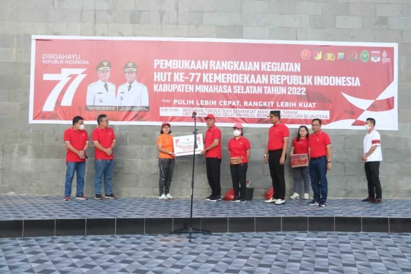 Dalam Pelaksanaan Pembukaan rangkaian kegiatan Peringatan HUT Ke-77 Kemerdekan Republik Indonesia di kabupaten Minahasa Selatan tersebut dilaksanakan pula Penyerahan bantuan usaha sebesar 4juta dan bantuan logistik Oleh Bupati Minahasa Selatan Bpk. Franky Donny Wongkar, SH kepada para korban bencana alam Pantai Amurang secara Simbolis.