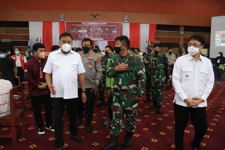 KOMUNIKASULUT.COM – Pagi ini (22/9-2021) Walikota Manado Bpk. Andrei Angouw mendampingi Gubernur Sulut Bpk. Olly Dondokambey mengunjungi pelaksanaam Vaksinasi massal di Auditorium Politeknik Negeri Manado.
