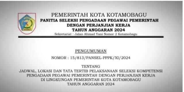 PENGUMUMAN JADWAL DAN LOKASI TES PPPK T.A 2024 KOTAMOBAGU