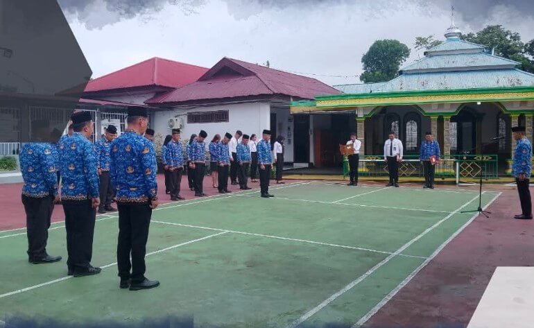Kegiatan apel pagi berjalan dengan tertib dan khidmat. Seluruh pegawai mengikuti rangkaian acara hingga selesai. Dengan pelaksanaan apel rutin ini.
