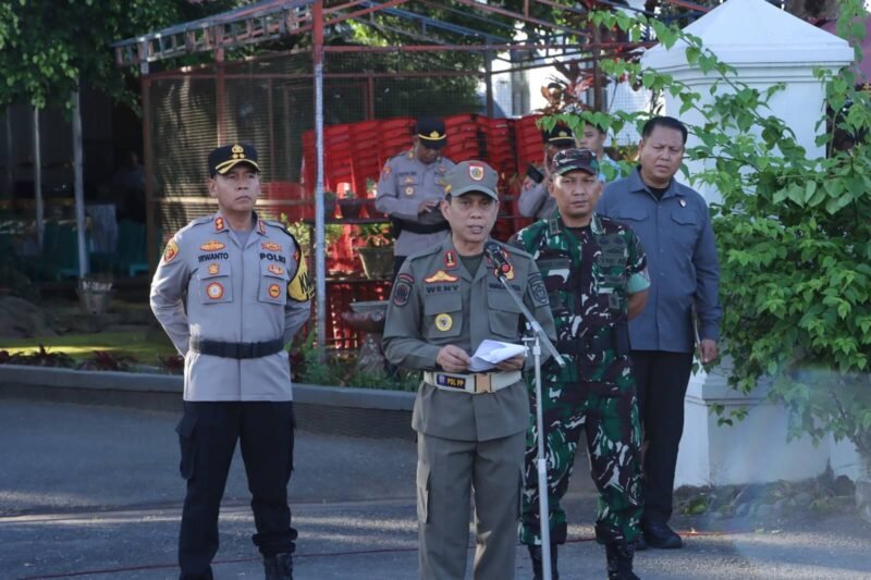 komunikasulut.com – Sinergitas kokoh ditunjukkan oleh jajaran pimpinan daerah dalam menyambut perayaan Idulfitri 1447 H. Kapolres Kotamobagu AKBP Irwanto, SIK, MH hadir bersama unsur Forum Koordinasi Pimpinan Daerah (Forkopimda) dalam Apel Gelar Pasukan Kesiapan Pengamanan Pawai Malam Takbiran yang dilaksanakan di depan Rumah Dinas Walikota Kotamobagu, Jumat (20/03/2026).