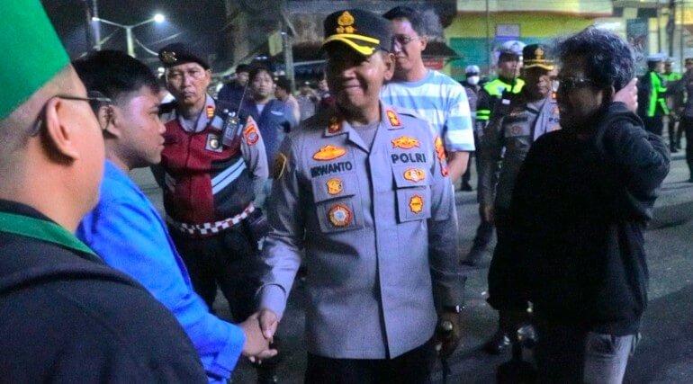 khaki-bee-173050.hostingersite.com – Kapolres Kotamobagu AKBP Irwanto, SIK, MH pantau langsung pengamanan aksi damai konsolidasi akbar oleh mahasiswa kotamobagu yang tergabung dalam GMKI, IMM dan PMII di tugu Permesta Kotamobagu, Jumat (29/8/2025).