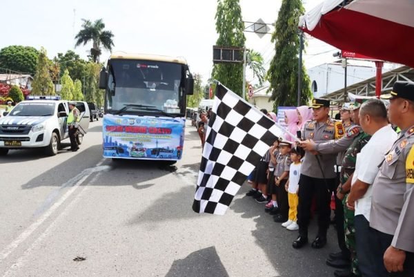 khaki-bee-173050.hostingersite.com – Kapolres Kotamobagu AKBP Dasveri Abdi, SIK melepas peserta “Balik Mudik Gratis” Polda Sulut yang bertempat di depan Mapolres Kotamobagu Minggu (30/4/2023).