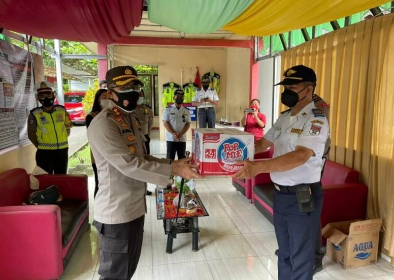 Pada kesempatan tersebut, Kapolres Minsel memberikan bingkisan mie instant, air mineral dan makanan ringan untuk para personel yang bertugas di pos-pos lebaran.