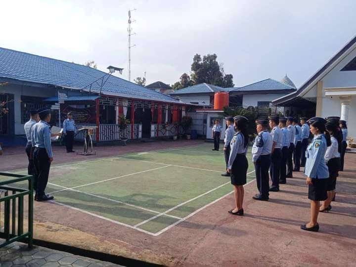 Kegiatan diikuti pejabat struktural dan para staf, yang berlangsung di lapangan utama Rutan, Senin (16/1/2023).