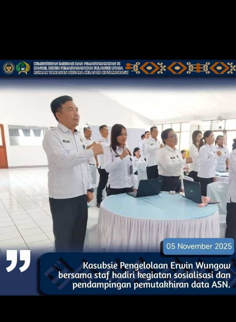 Kasubsi Pengelolaan Rutan Kotamobagu, Erwin Wungow, menyampaikan bahwa kegiatan ini sangat bermanfaat dalam mendukung tata kelola administrasi kepegawaian yang modern dan transparan. “Kami berharap setelah sosialisasi ini, data ASN di Rutan Kotamobagu semakin akurat dan mutakhir,” ujarnya.