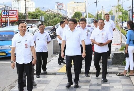 Walikota bersama tim meninjau situasi dan kondisi pedestrian dari Mall Pelayanan Publik Kota Manado hingga kawasan pusat perbelanjaan Manado Town Square (Mantos)