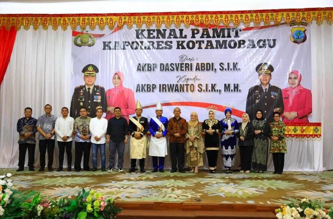 “Dalam kesempatan yang berbahagia malam hari ini, saya atas nama pribadi, atas nama keluarga, atas nama Pemerintah Daerah, dan perkenankan saya atas nama Forkopimda, seluruh masyarakat Kota Kotamobagu menyambut kedatangan yang terhormat, Bapak. AKBP. Irwanto., S.I.K., M.H bersama Keluarga di Kota Kotamobagu, dalam bahasa daerah “Dega Niondon Komintan,”. Kami dengan rasa gembira dan hati terbuka menyambut kedatangan Bapak dan Keluarga, Selamat bertugas di Kotamobagu. Dan kami yakin dan percaya, kehadiran Bapak. AKBP. Irwanto., S.I.K., M.H., sebagai pejabat baru Kapolres Kotamobagu, pastinya telah membawa berbagai pengalaman, sebagai bekal dalam melaksanakan tugas serta pengabdian di daerah yang sama – sama kita cintai ini,”ungkapnya.