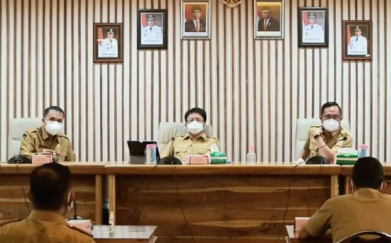 KOMUNIKASULUT.COM – Walikota Manado Andrei Angouw bersama Wakil Walikota Richard Sualang didampingi Sekertaris Daerah Kota Manado Micler Lakat menggelar rapat koordinasi bersama para Camat bertempat di ruangan Toar Lumimuut Kantor Walikota Selasa (10/8/2021) pagi.
