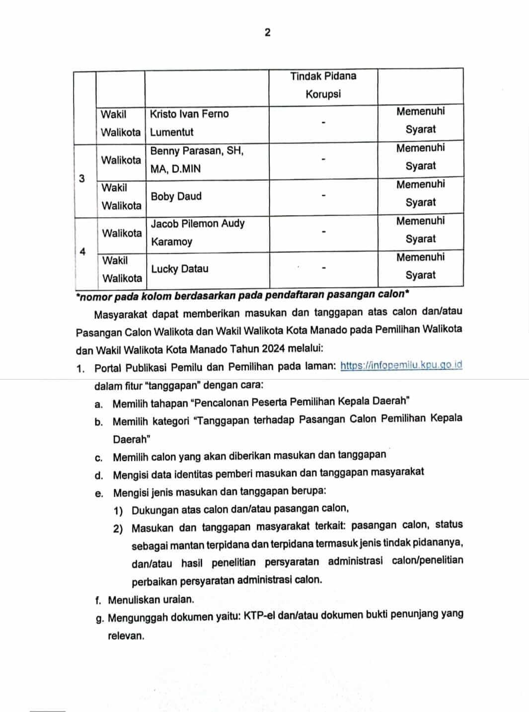 KPU Manado Buka Tanggapan Masyarakat Terhadap Tiga Bapaslon Pilkada Kosmed14 September 202415 September 2024778 Dilihat 778 Pos terkaitBawaslu Sulut Refleksikan Pemilu 2024 Bersama Mitra KerjaBawaslu Sulut Evaluasi dan Rekomendasi Tindaklanjut Pilkada Lewat Ngabuburit PengawasanKPU Sulut Ucapkan Terima Kasih dan Selamat ke ODSK dan YSK-VictoryPemilih Rasional Meningkat, Partisipasi Pilkada Sulut 2024 MenurunMakase So Sama-sama Mengawasi Pemilihan Serentak 2024Natal 2024 Beri Semangat Bawaslu Sulut Tuntaskan Kerja-kerja Pengawasan