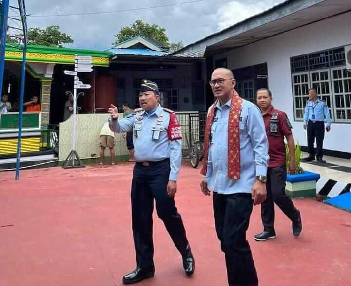 khaki-bee-173050.hostingersite.com – Kepala Rutan Kotamobagu Setyo Prabowo sambut kedatangan Kakanwil Kumham Sulut Ronald Lumbuun saat kunkernya di Rutan Kotamobagu, Selasa (21/2/2023).