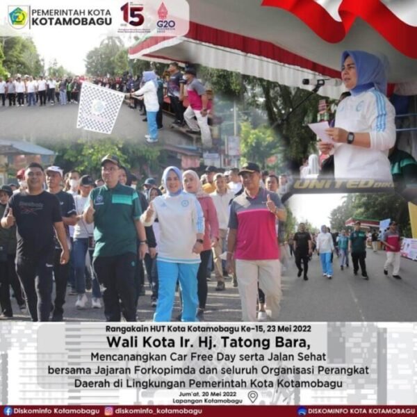 khaki-bee-173050.hostingersite.com – Dalam rangkaian memperingati Hari Ulang Tahun (HUT) Kota Kotamobagu Ke-15, 23 Mei 2022 mendatang, Wali Kota Kotamobagu Ir Hj Tatong Bara mencanangkan Car Free Day serta melepas Lomba Lari 5 KM dan Lomba Maraton 10 KM tingkat Kota Kotamobagu.