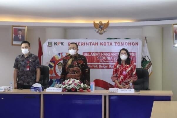 KOMUNIKASULUR.COM – Dalam rangka memperingati Hari Anti Korupsi Sedunia tahun 2021 yang dibuka langsung oleh Presiden Joko Widodo di gelar di gedung KPK Jakarta, Wakil Wali Kota Tomohon Wenny Lumentut SE mewakili Wali Kota, dari Command Center MPP Wale Kabasaran Kota Tomohon, Kamis (9/12/2021).