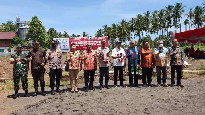 Dimana Peletakkan Batu pertama Pembangunan Factory Sharing Dalam rangkah mendukung Major Project Pengolahan Terpadu UMKM Produk Kelapa dan Turunannya dilakukan oleh Mentri Koprasi dan UKM, Drs Teten Masduki dan didampingi l Bupati Minsel Franky Donny Wongkar SH dilaksanakan di Desa Kapitu kecamatan Amurang Barat, Jumat (23/9/2022).