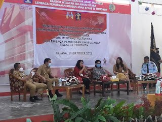 KOMUNIKASULUT.COM – Menteri Pemberdayaan Perempuan dan Perlindungan Anak (PPPA) Republik Indonesia, Bintang Puspayoga dalam kunjungan kerjanya di Sulawesi Utara (Sulut), Selasa (19/10/2021), ikut meninjau kegiatan vaksinasi anak di Lembaga Pembinaan Khusus Anak (LPKA) Kelas II Tomohon.