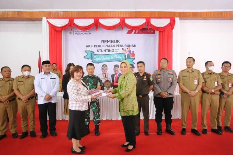 WaliKota Kotamobagu Ir Hj Tatong Bara dan Pelaksana Harian Kepala Badan Pusat Statsitik (BPS) Kotamobagu Sirly Catharina Worotikan SE MSi, menandatangani Memorandum of Understanding (MoU) antara Pemerintah Kota Kotamobagu dan Badan Pusat Statistik (BPS) Kotamobagu, di sela kegiatan rembuk aksi percepatan penurunan stunting tahun 2022, yang bertempat di Aula Rudis WaliKota.