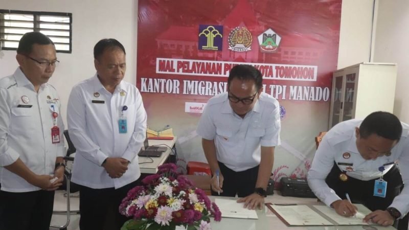 khaki-bee-173050.hostingersite.com – Walikota Tomohon Caroll Joram Azarias Senduk SH melakukan Penandatanganan Nota Kesepakatan antara Pemerintah Kota Tomohon dengan Kepala Kantor Imigrasi Kelas I TPI Manado Made Nur Hepi Juniartha SH MAP, tentang Layanan Keimigrasian di Mall Pelayanan Publik Kota Tomohon, (10/5/2023).