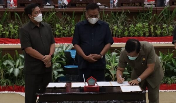 “Kesepakatan KUA/PPAS APBD tahun anggaran 2022, berdasarkan peraturan DPRD nomor 2 tahun 2019 tentang tata tertib DPRD bahwa kebijakan umum APBD perioritas serta plafon anggaran sementara yang dapat persetujuan bersama, akan ditandatangani oleh Gubernur dan pimpinan DPRD Sulut dalam rapat paripurna ini,” jelas Ketua DPRD Sulut Fransiscus Andi Silangen yang duduk didampingi Victor Mailangkay dan Billy Lombok selaku wakil ketua.