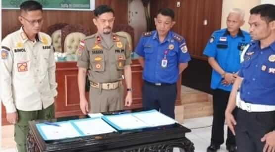 Hal ini ditindaklanjuti dengan penandatanganan Perjanjian Kerja Sama (PKS) antara Pemkot Kotamobagu yang diwakili Kepala Dinas Satpol PP dan Damkar Sahaya S. Mokoginta S.STP ME, bersama Pemkab Bolmong yang diwakili Kepala Dinas Satpol PP dan Damkar Zulfadhli Binol SE ME.