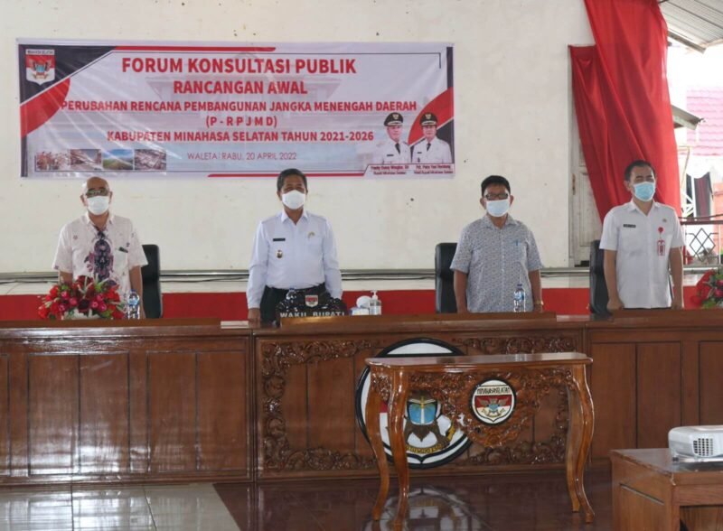 Forum Konsultasi Publik (FKP) rancangan awal Perubahan Rencana Pembangunan Jangka Menengah Daerah (P-RPJMD) Kabupaten Minahasa Selatan tahun 2021-2026.