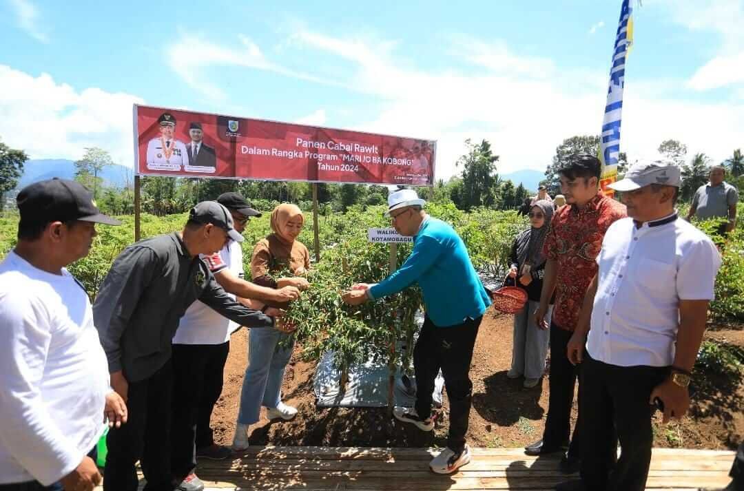 Kegiatan Panen Cabai Rawit yang dipimpin langsung Pj. Wali Kota Kotamobagu, Dr. Drs. Hi. Asipan Nani., M.Si., yang diikuti ratusan Aparatur Sipil Negara dilingkungan Pemerintah Daerah Kota Kotamobagu tersebut merupakan pelaksanaan Program “Mari Jo Ba Kobong” yang dicanangkan Gubernur Sulawesi Utara, Prof. Dr. (H.C) Olly Dondokambey, S.E dan Wakil Gubernur Sulawesi Utara, Drs. Steven. O.E. Kandouw, pada beberapa waktu lalu.