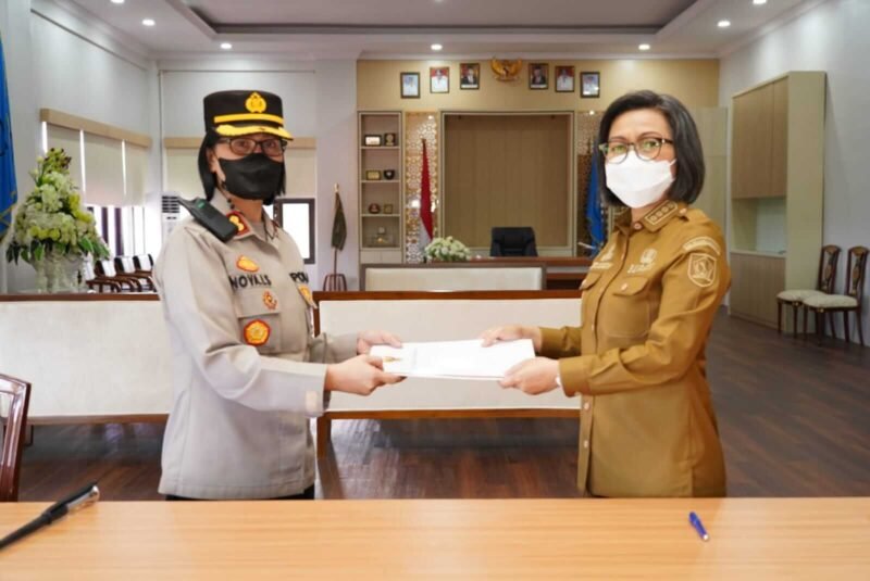 Penyerahan bantuan tersebut berlangsung di ruang kerja Bupati Bupati Bolmong disertai dengan Penandatanganan serah terima Hibah barang milik Daerah oleh Bupati Bolmong Dra Hj Yasti Soepredjo Mokoagow bersama Kapolres Bolmong AKBP Nova Irone Surentu. SH MH.