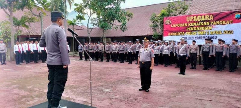 khaki-bee-173050.hostingersite.com – Mapolres Kotamobagu melaksanakan Upacara kenaikan pangkat pengabdian Polres Kampar terhitung mulai tanggal 1 Oktober 2022, yang di pimpin langsung Kapolres Kotamobagu AKBP Dasveri Abdi SIK dan di ikuti jajaran polsek serta para personel yang bertempat di halaman polres, Rabu (3/4/2023).